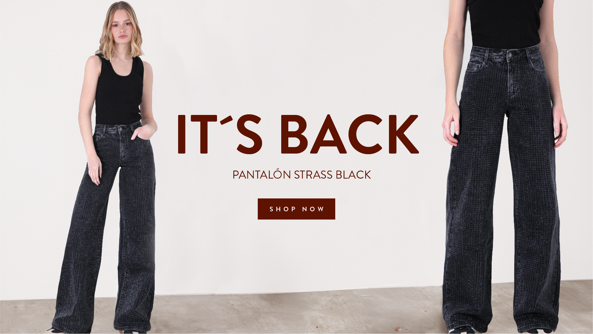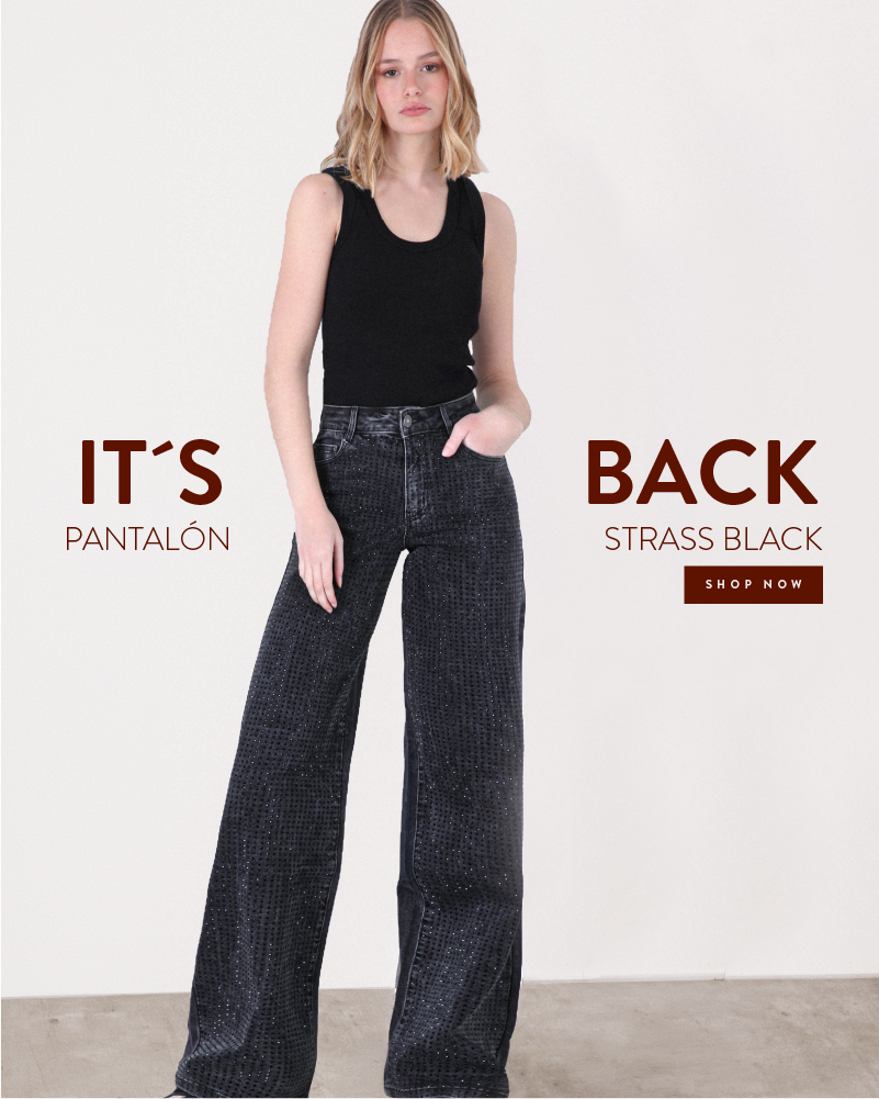Pantalón Wide Leg Strass Black