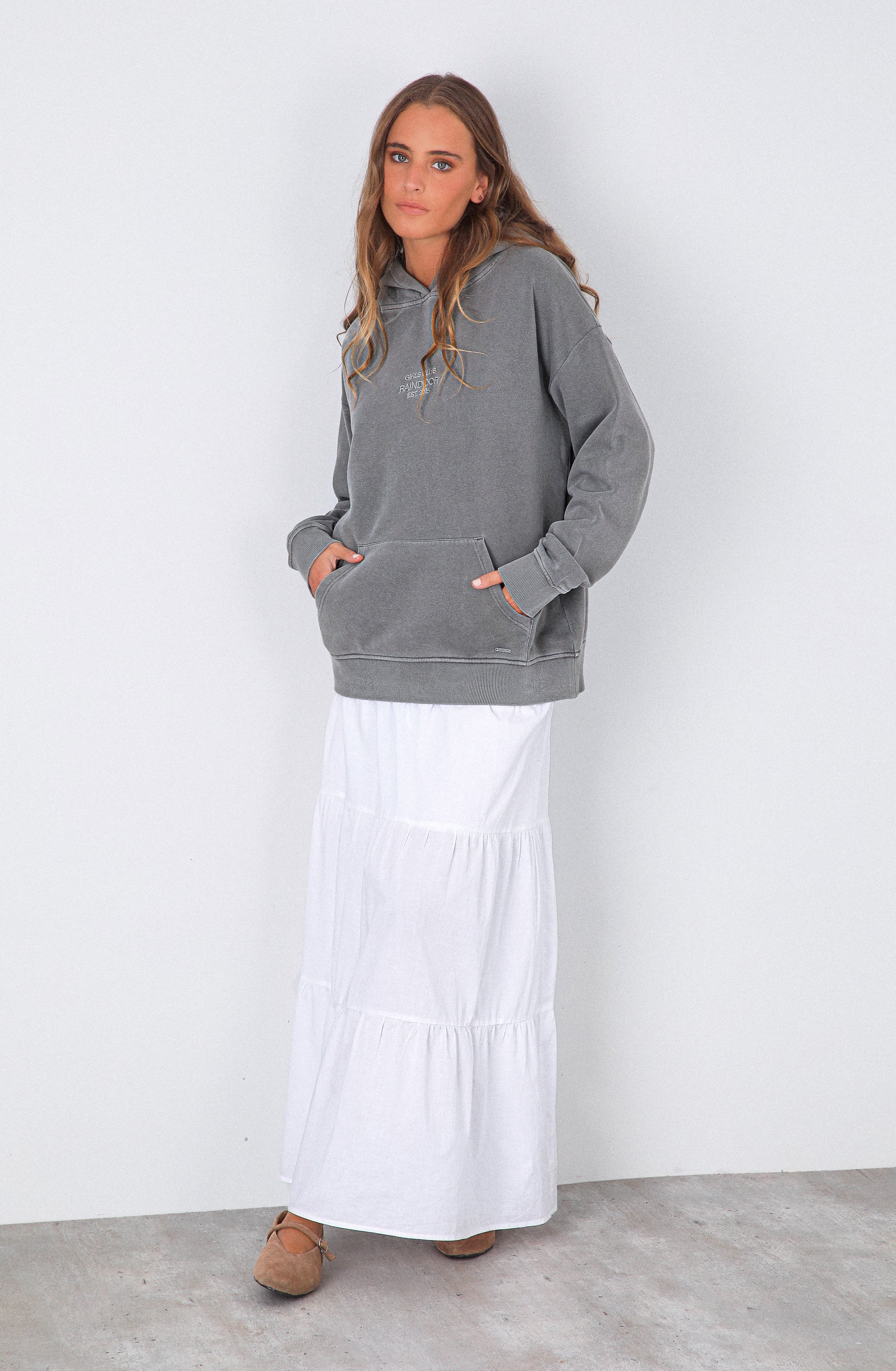 POLERÓN HOODIE RAINDOOR GIRLS GREY de Raindoor es una prenda esencial con actitud relajada y estética cuidada, pensada para elevar los looks cotidianos desde la simpleza. Su diseño con capucha y bolsillo delantero aporta un aire moderno y urbano, mientras el tono gris le da versatilidad y un carácter atemporal. El logo bordado en el frente suma identidad de marca de forma sutil y elegante, manteniendo el equilibrio entre comodidad visual y estilo editorial.