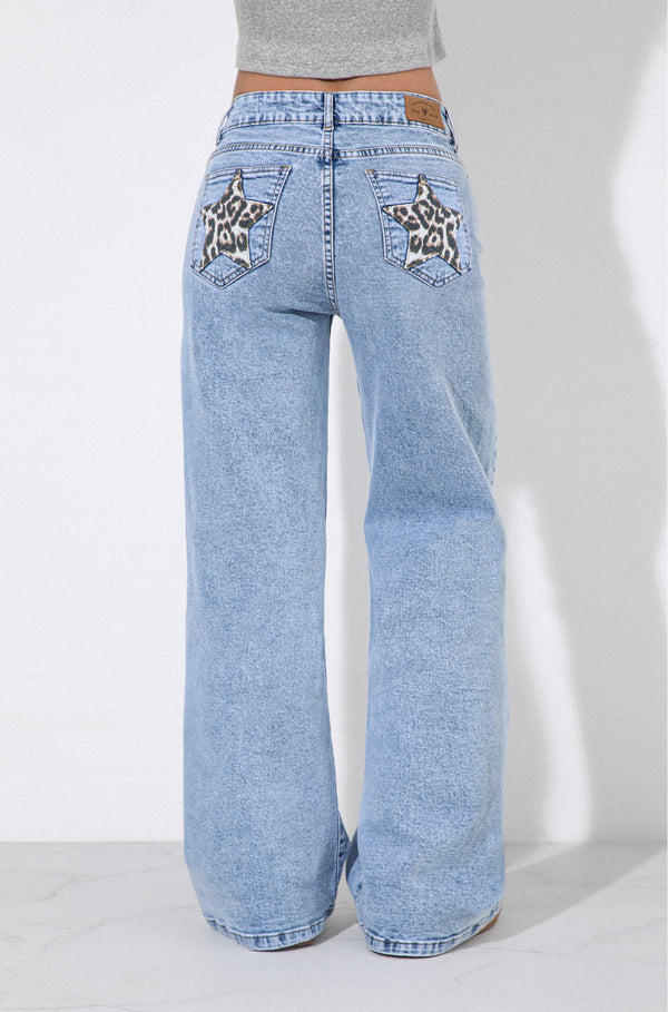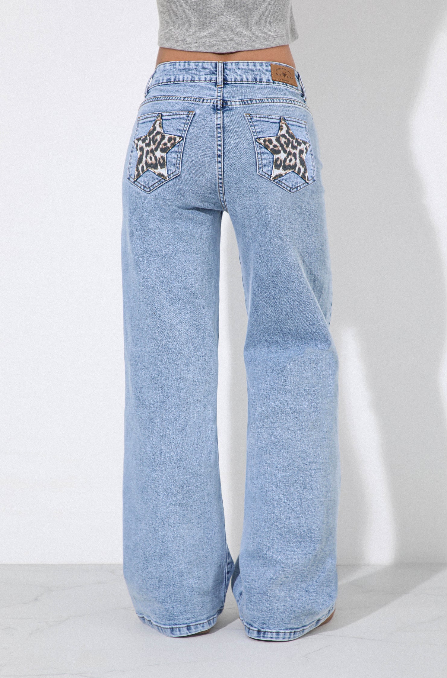 Nuestro nuevo pantalón de jeans con estrellas animal print en sus bolsillos traseros nos trae un diseño increíble, cómodo y estiloso. Es un jeans de tiro medio, corte recto y semi elasticados con estilo inigualable y a la moda en tendencia.