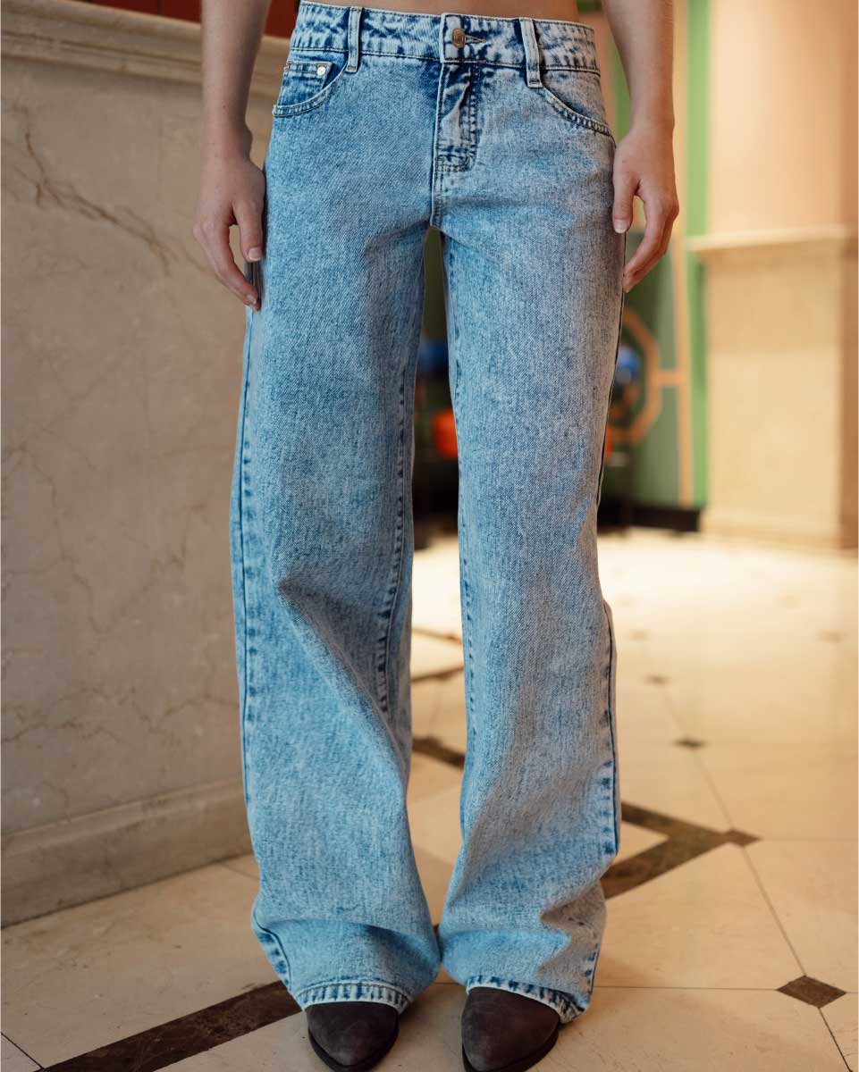 Pantalón Wide Leg Strass Light Blue
