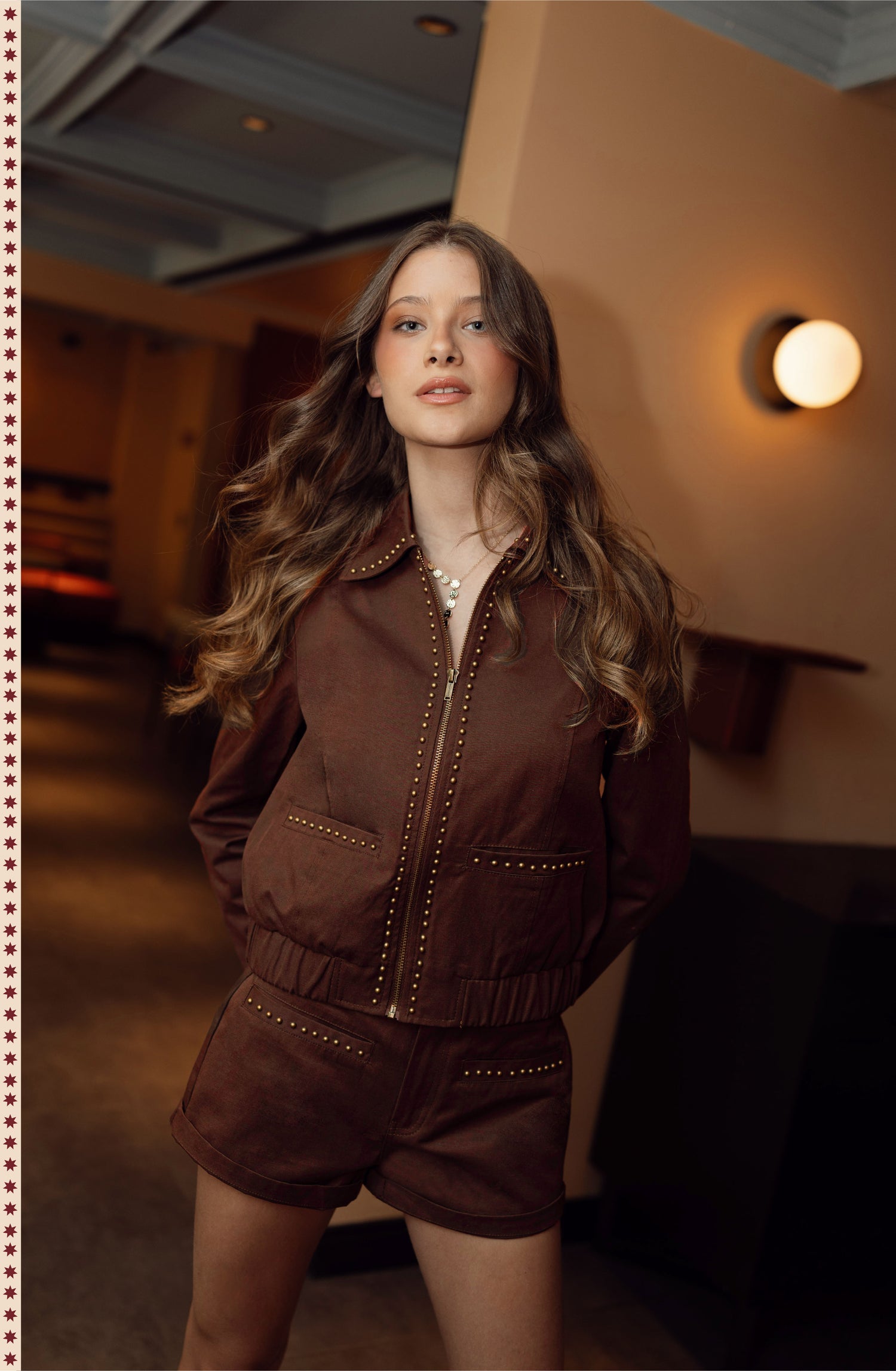 Chaqueta Bomber Tachas Brown