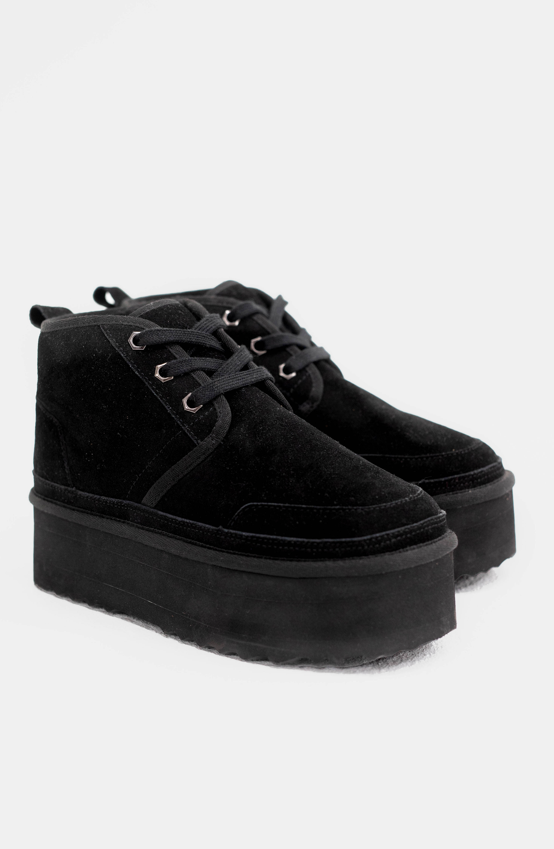 Botín plataforma negro es uno de los infaltables, un zapato cómodo y abrigador, perfecto para días fríos y para complementar un outfit increíble. Descubre dónde te llevarán esta temporada estos zapatos de Raindoor que son la primera edición de calzados.