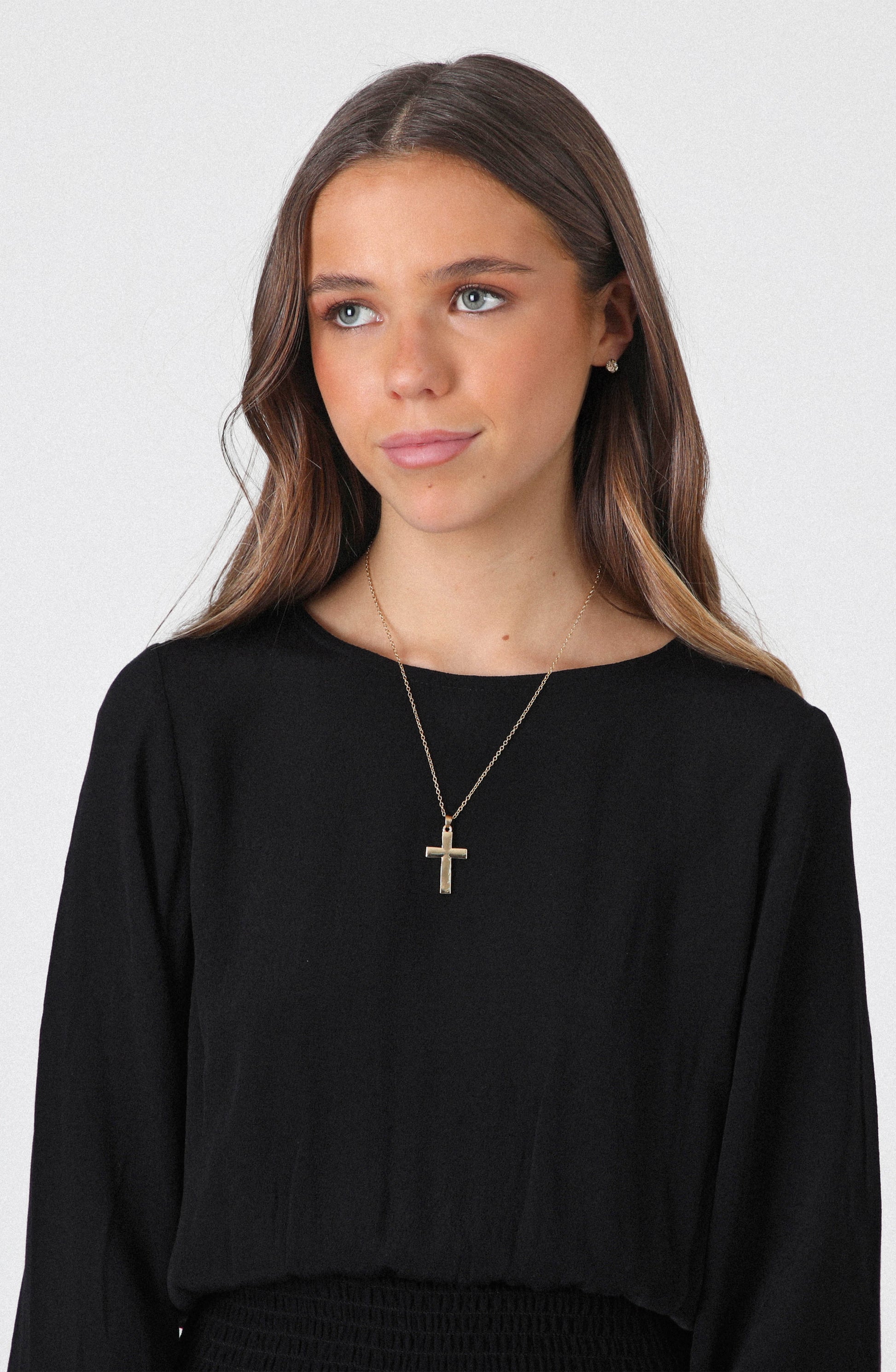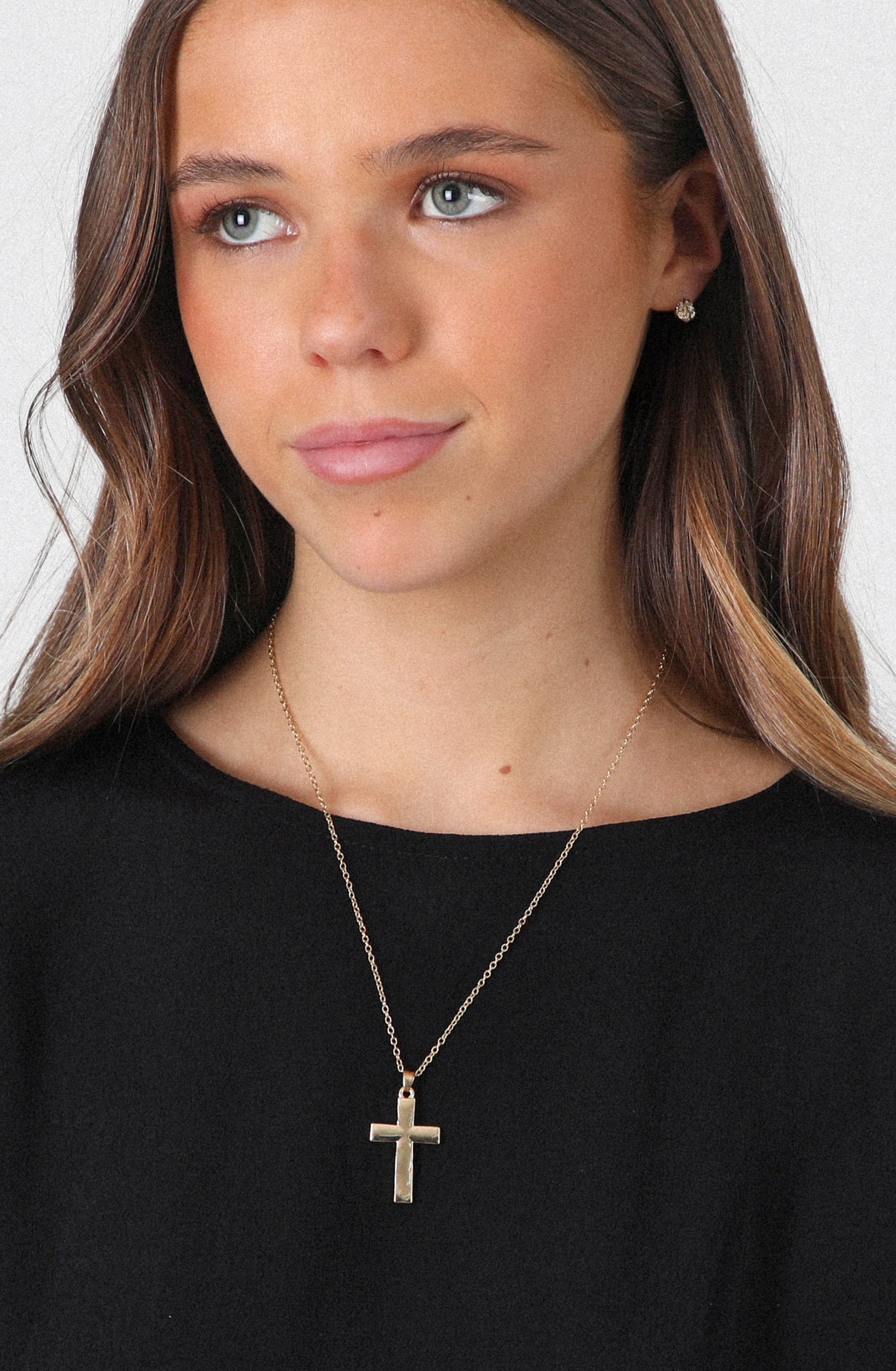 El colgante en forma de cruz destaca por su sencillez y carácter clásico, convirtiéndose en un imprescindible dentro de tu colección de accesorios. Su terminación metálica y liviana lo hace cómodo de llevar en el día a día o en ocasiones especiales.