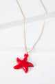 Collar con cadena fina en tono dorado y dije en forma de estrella de mar en color rojo. Fabricado en plástico y cadena de un material ligero y fácil de llevar. Su diseño llamativo aporta un toque de color y frescura a cualquier look.