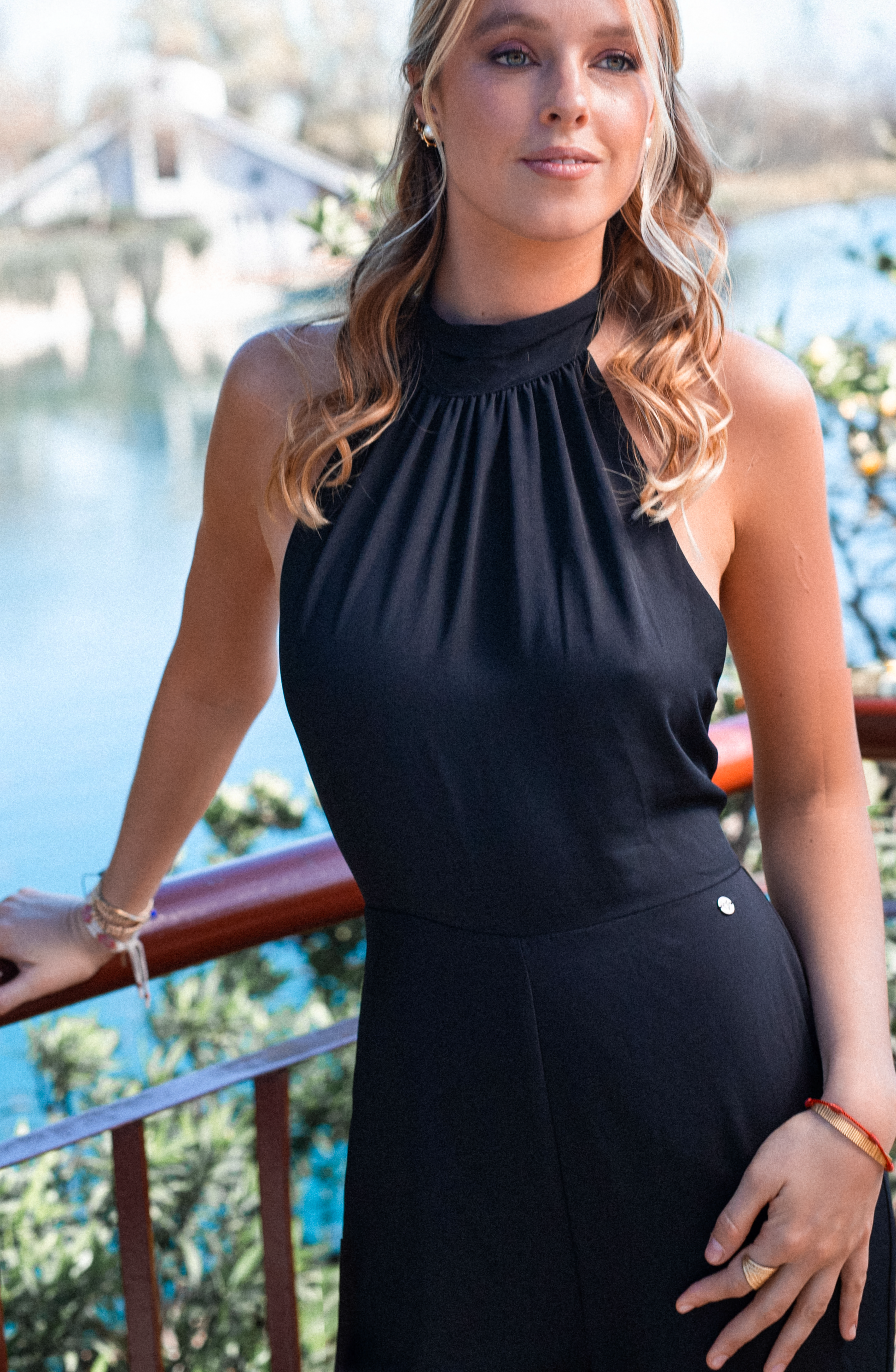 Nuevo enterito Halter de una pieza negro, un color infaltable y que puedes combinar con accesorios dorados y plateados para que resaltes tus facciones y estilo sintiéndote cómoda, elegante con sus hombros descubiertos y espalda abierta. Ajustable al cuello con tirantes largos que resaltarán tu espalda. Sé una invitada brillante con este Enterito Halter One Piece Black. Su color versátil te permite usarlo en eventos formales, casuales y elegantes.