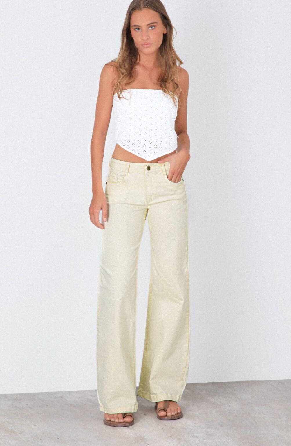Pantalón Colores Yellow es un pantalón straight de tiro medio en color amarillo, diseñado para entregar un look moderno y versátil sin perder elegancia. Su silueta recta y la caída firme del denim lo convierten en un básico actualizado, fácil de combinar tanto con poleras casuales como con blusas más elevadas.