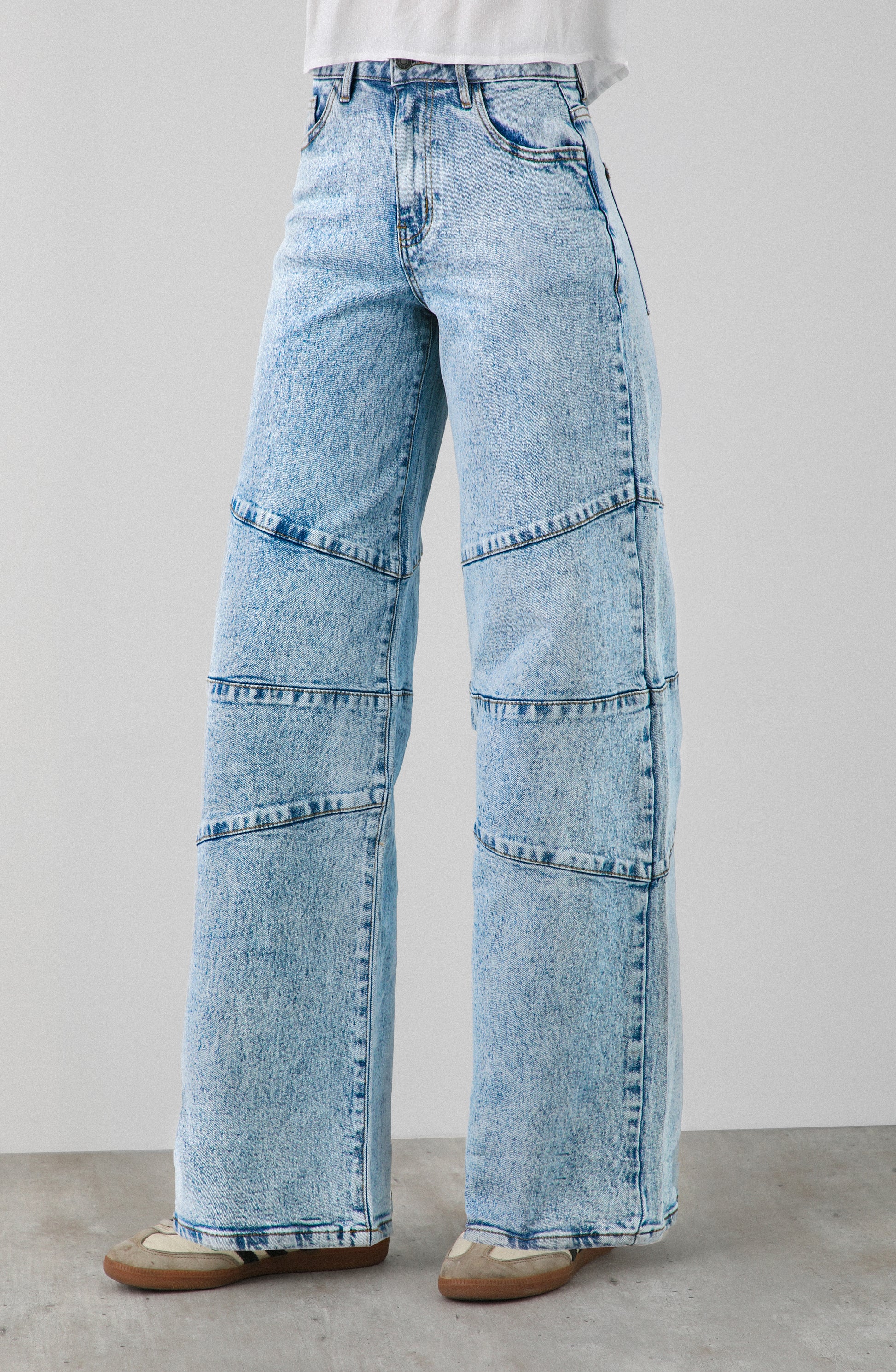 - Pants con elasticidad, poco rígidos y diseño wide leg.