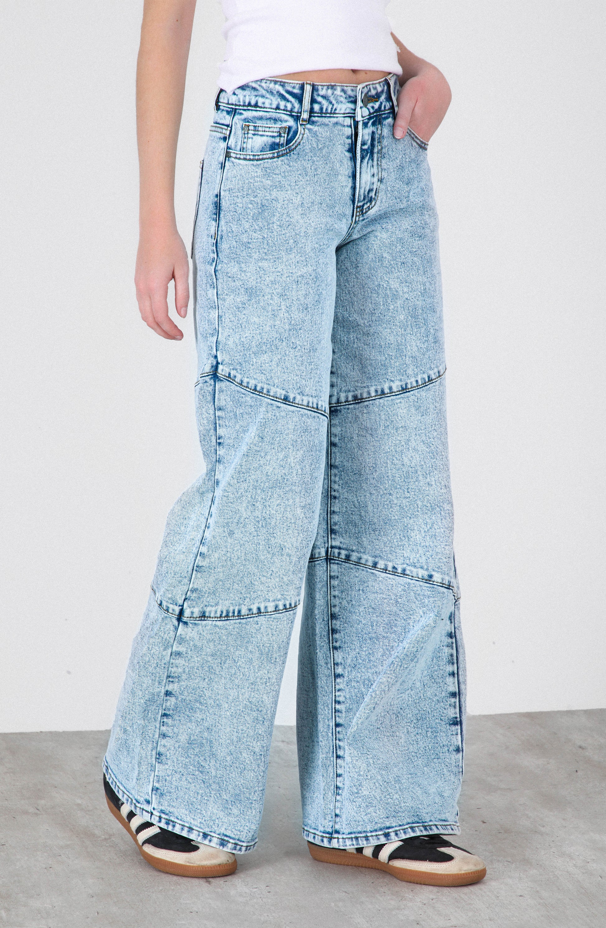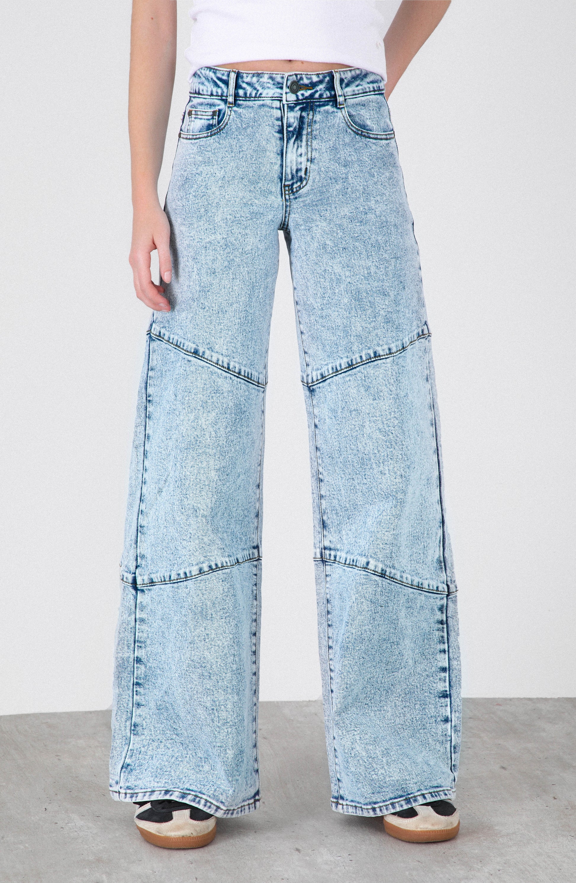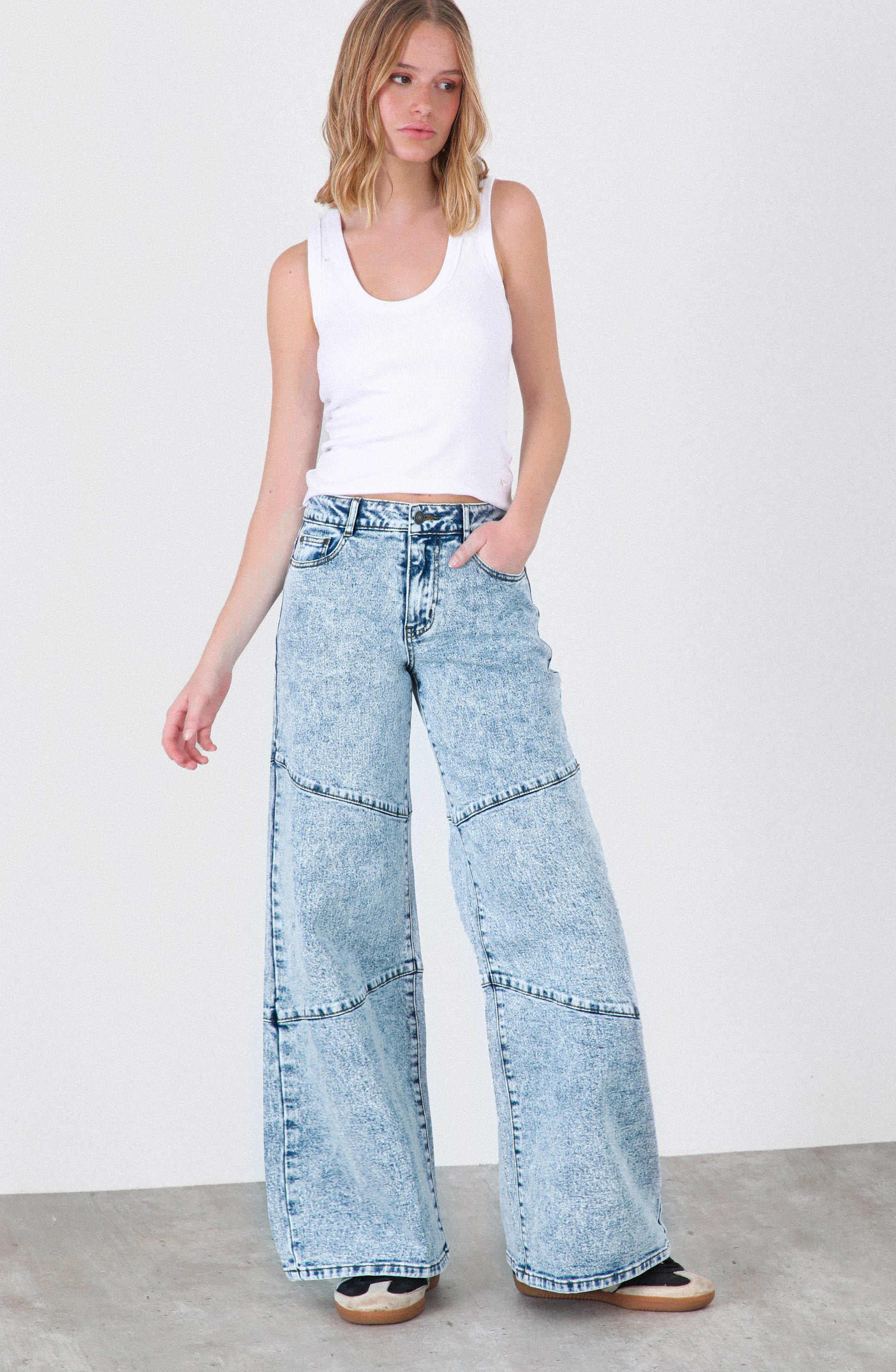 Pantalón Costuras Blue es una prenda moderna y versátil que aporta un aire relajado y juvenil a cualquier look. Su fit wide leg y tiro bajo entregan una silueta amplia y cómoda, perfecta para quienes buscan estilo sin perder libertad de movimiento. El tono azul con efecto gastado realza el diseño y lo convierte en un básico con carácter propio.