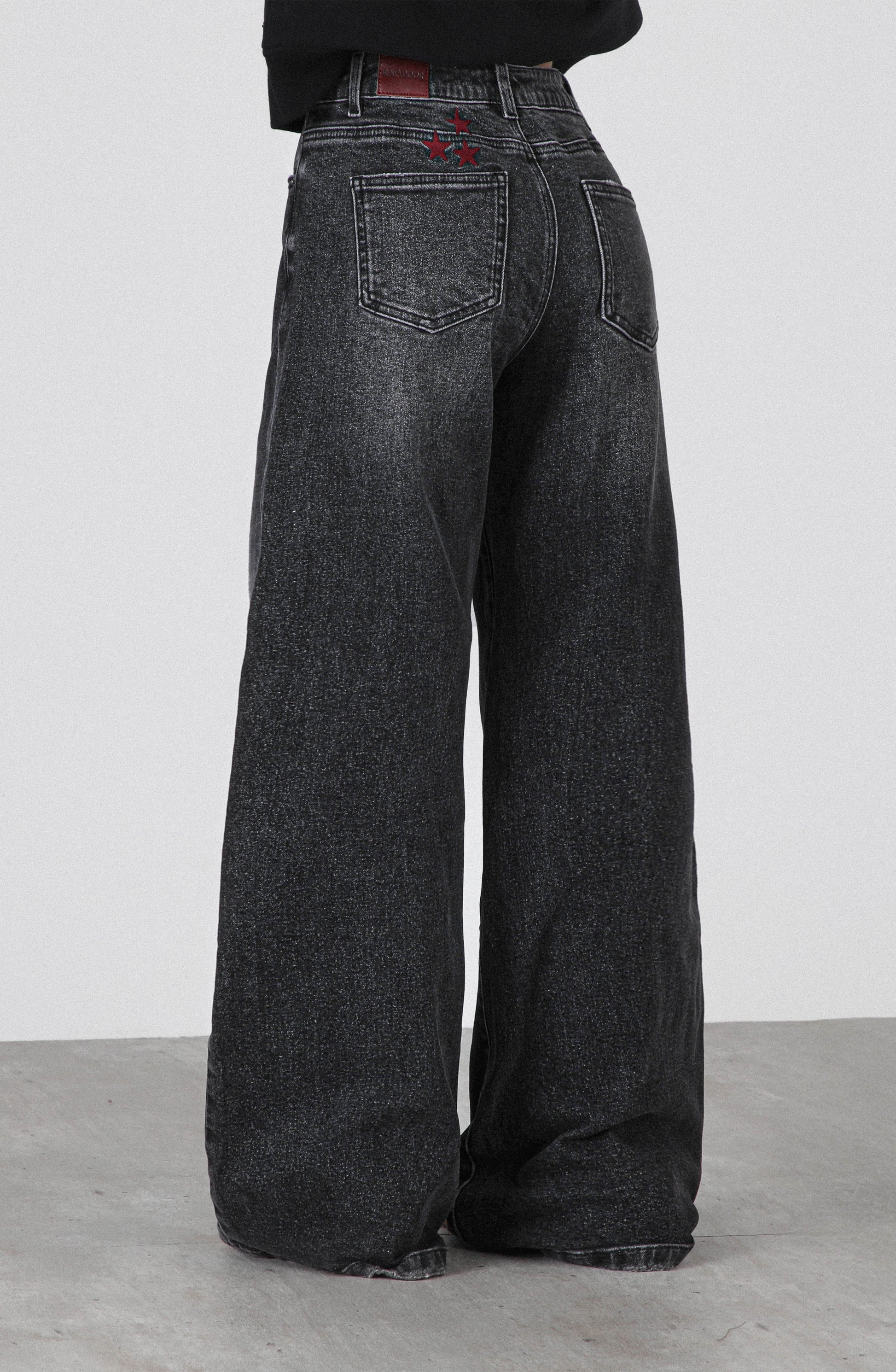 Bordado de estrellas en color burdeo en el bolsillo trasero