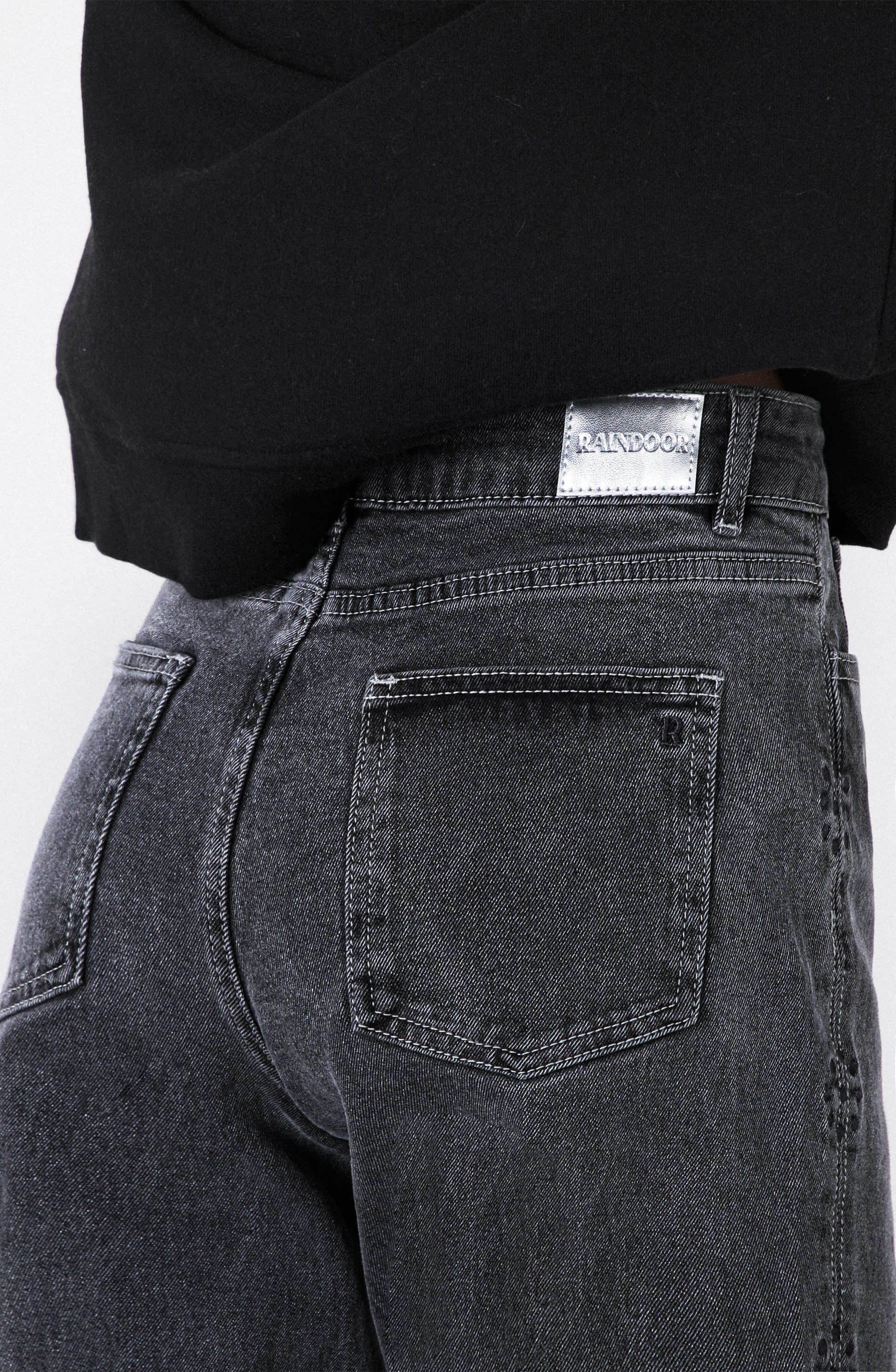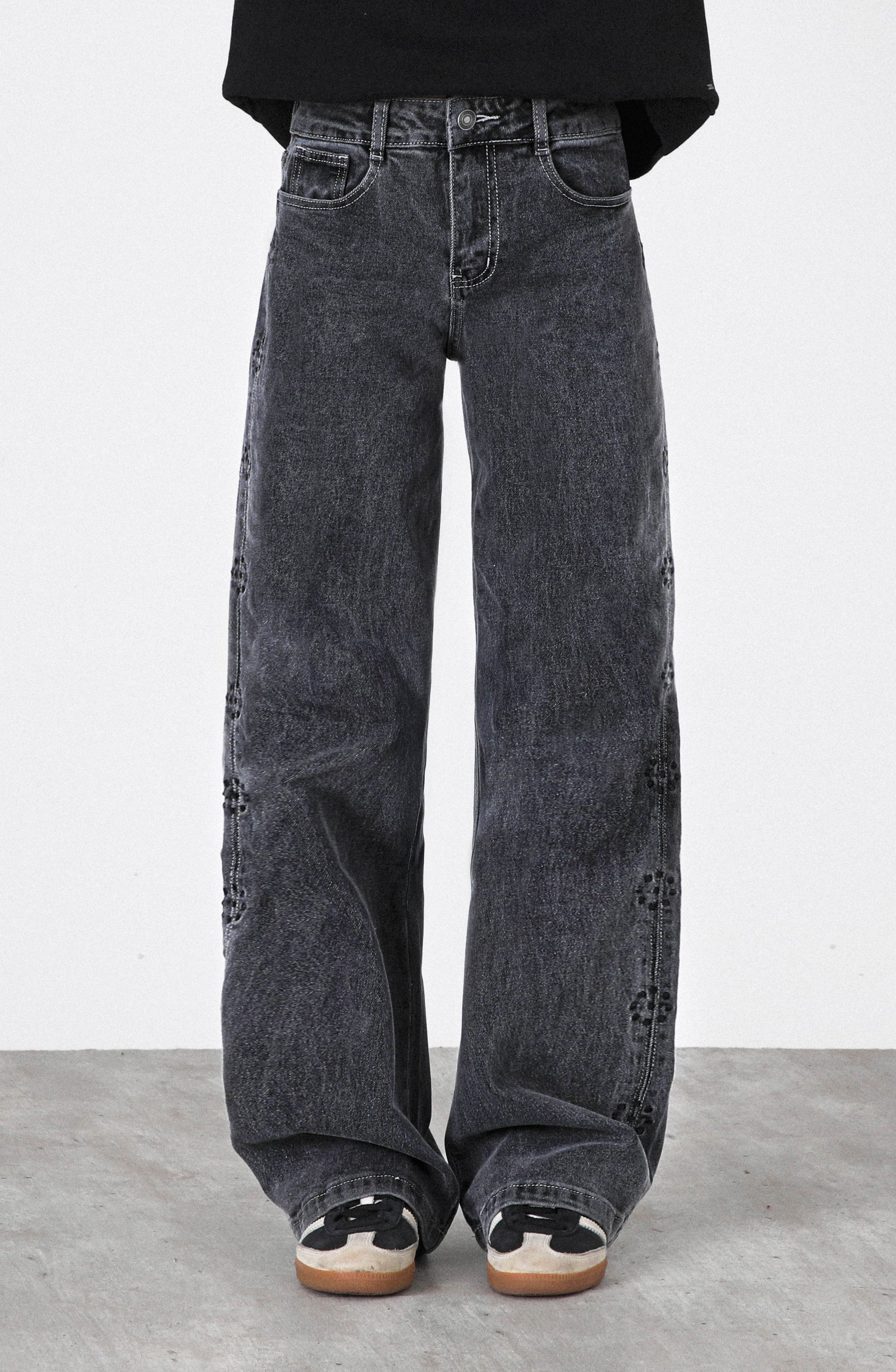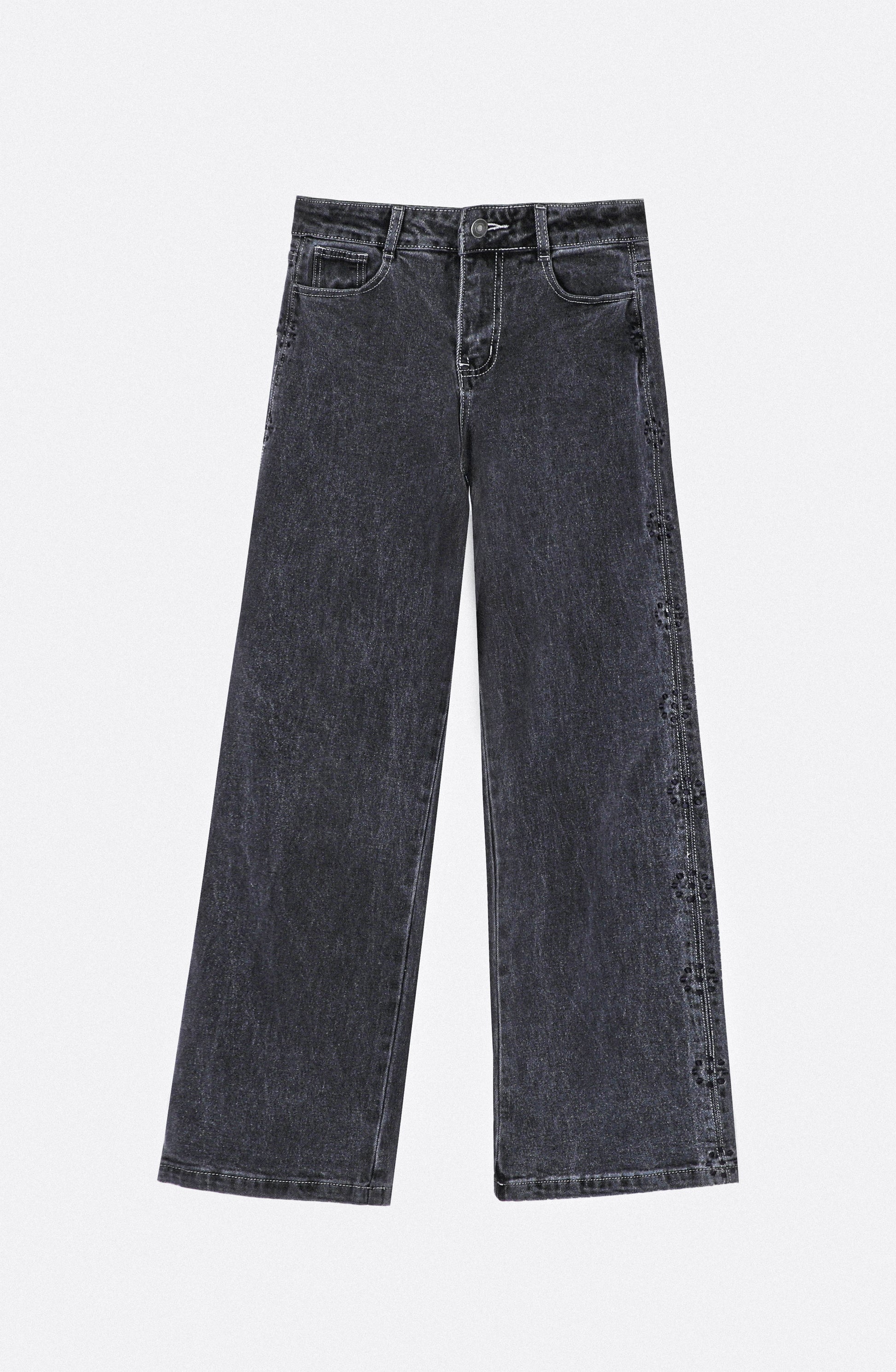 Pantalón Flor Bordada Grey es un pantalón gris de tiro medio y fit recto, ideal para looks relajados con un toque distintivo. Su diseño incorpora bordados en forma de flores a lo largo de los costados, que aportan textura y un detalle artesanal sutil sin perder la estética moderna del denim. De estructura firme y calce cómodo, mantiene una caída natural que estiliza y alarga la figura.