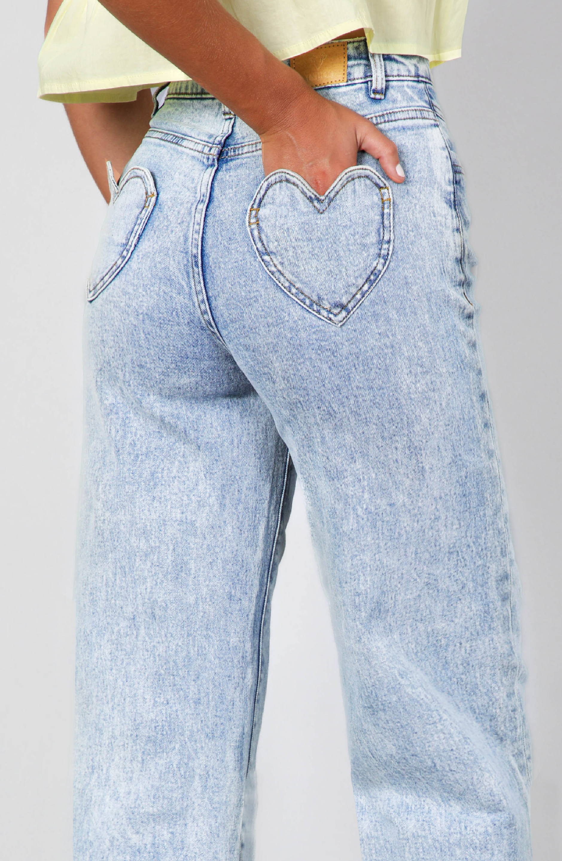 - Bolsillos traseros diseño corazón.
