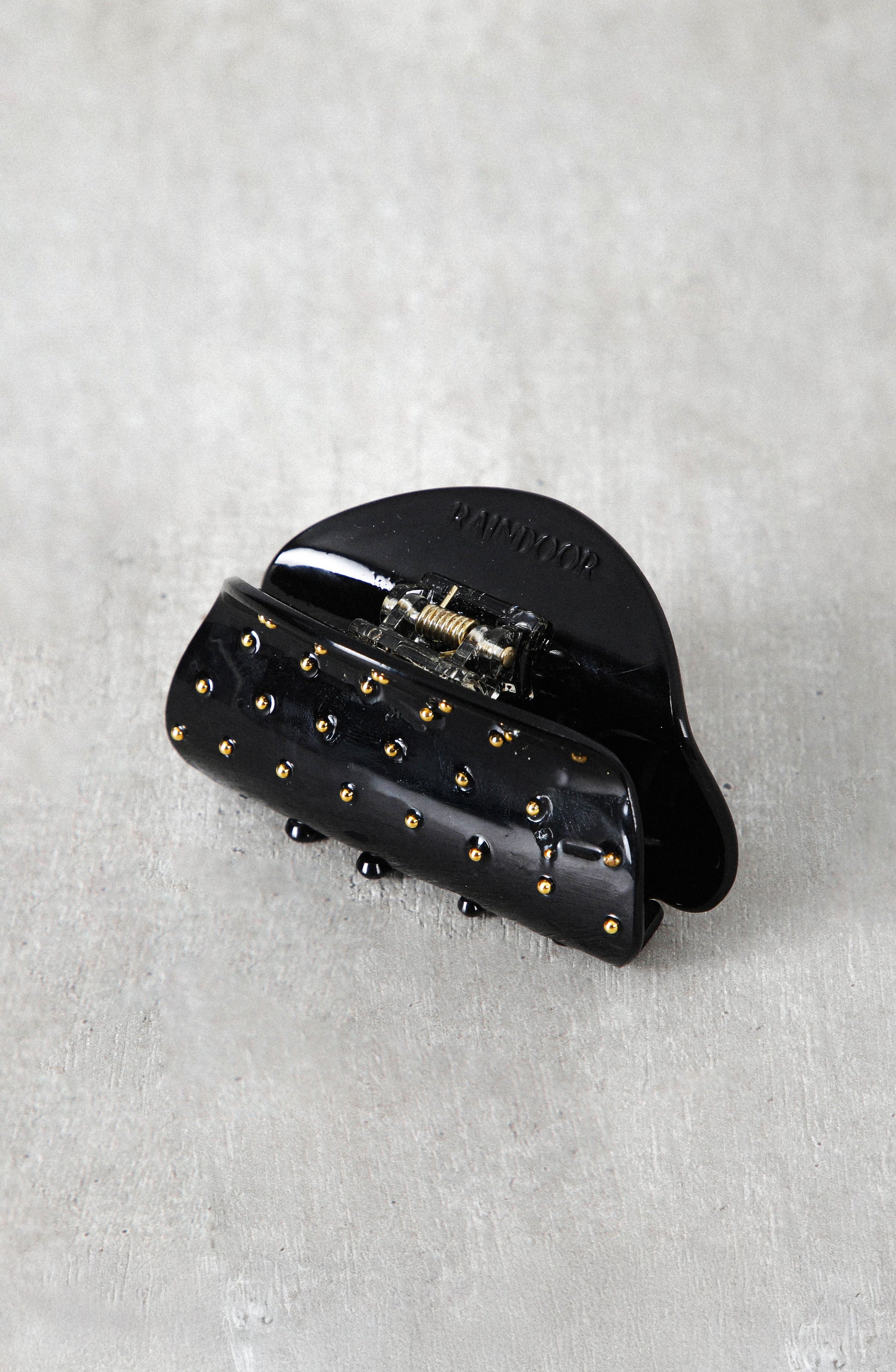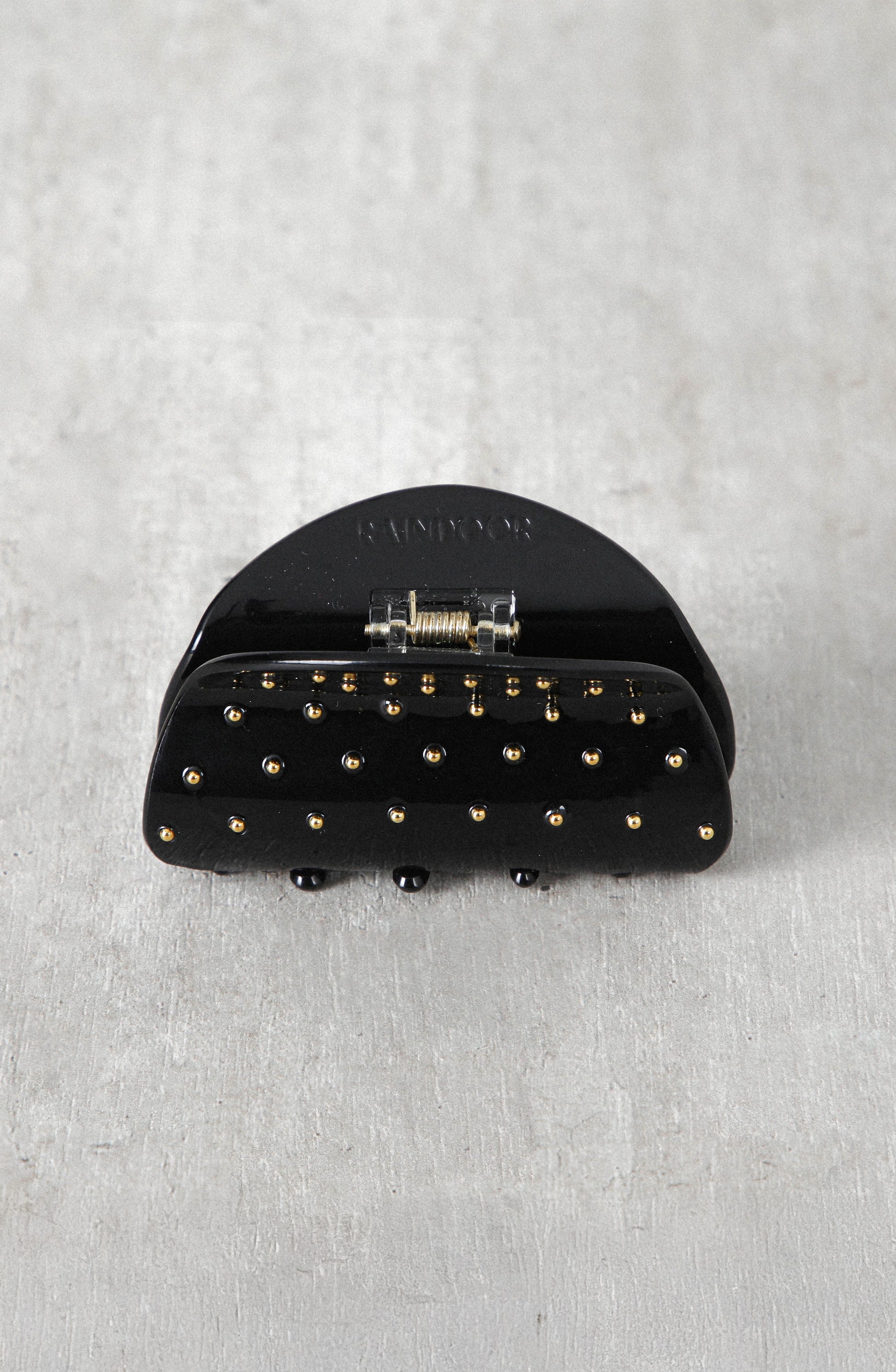 Pinche negro con tachas metálicas doradas