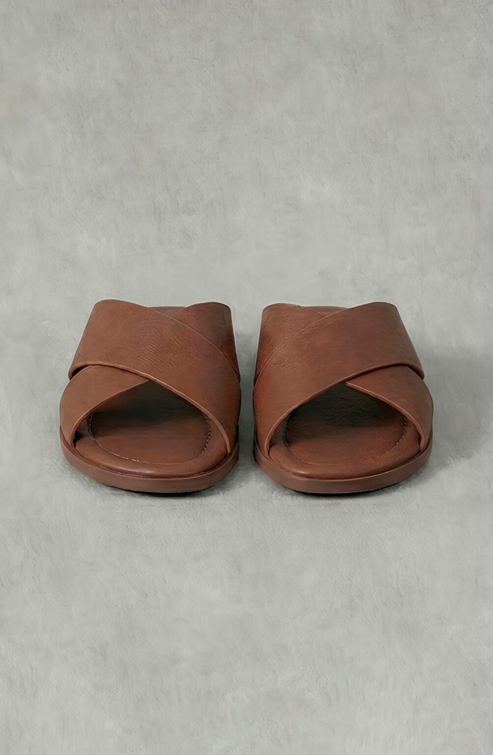 Sandalia Cruzada Brown es una sandalia plana de color café, diseñada para combinar estilo y comodidad en un formato versátil y atemporal. Su diseño se compone de dos tiras anchas cruzadas sobre el empeine, que aportan un ajuste firme y una silueta clásica. Su tono café cálido y su acabado levemente texturizado la hacen perfecta para acompañar looks relajados, desde jeans hasta vestidos veraniegos.