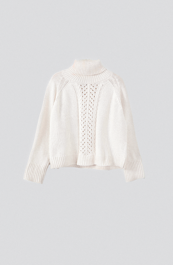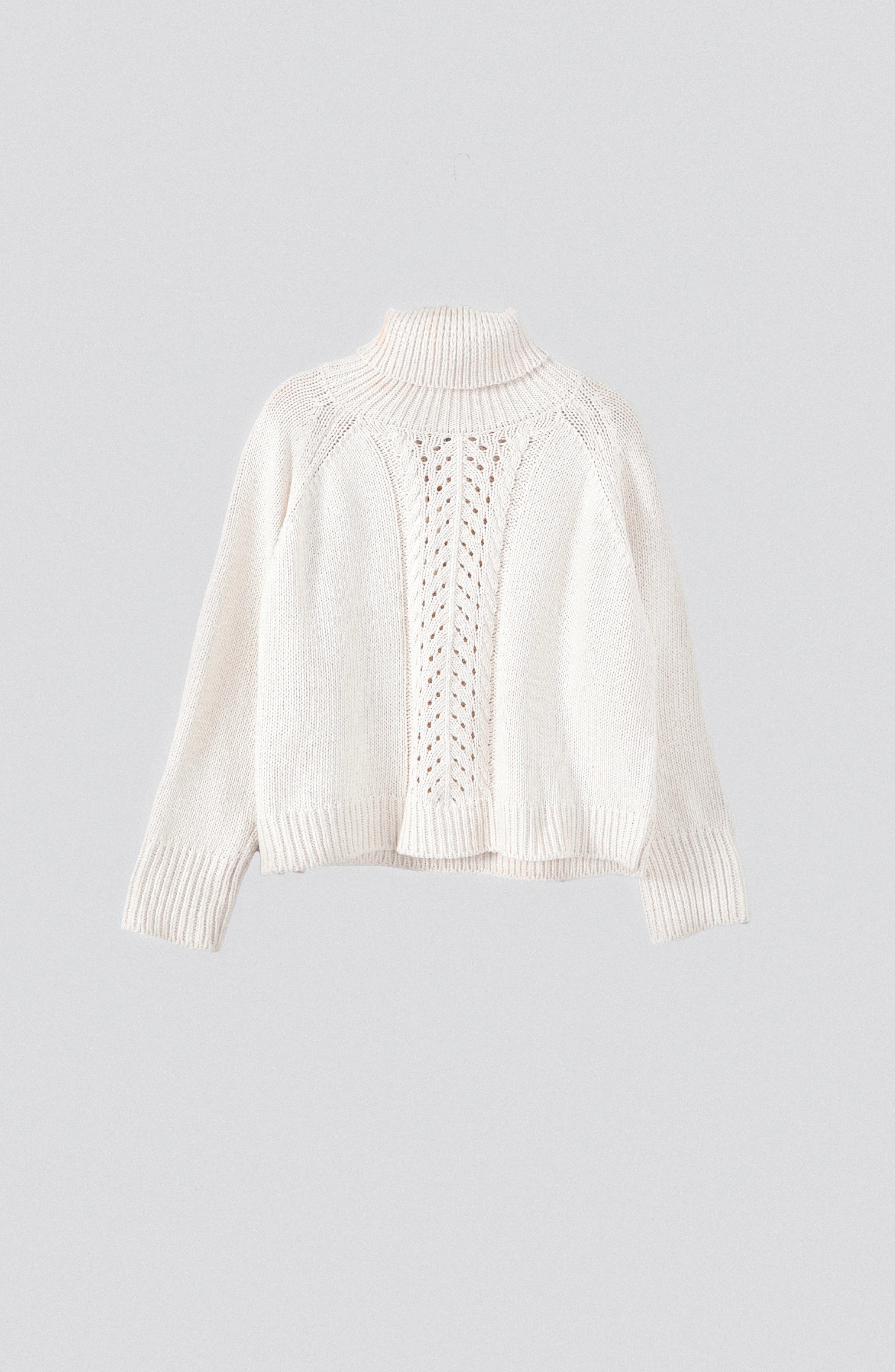 - Sweater o chaleco con mangas, con cuello de tortuga en color crudo.