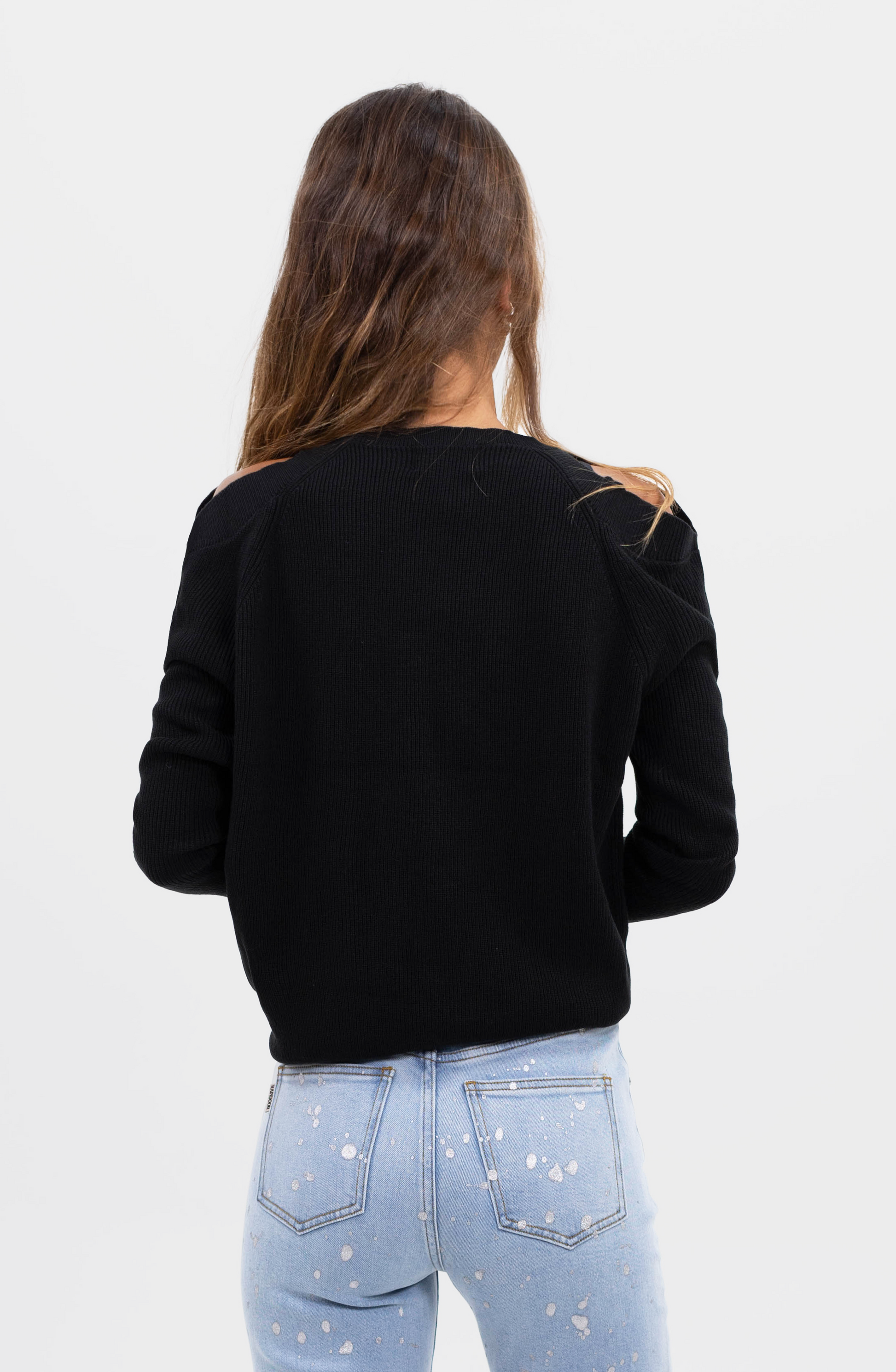 Nuevo sweater con hombros descubiertos en color negro. Es un sweater simple con su toque diferenciador en los hombros que se dejan mostrar sutilmente, dándole un toque a un outfit simple.