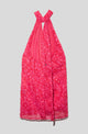 Nuestro Vestido Corto Halter Pink es una pieza romántica y vibrante que captura la esencia del verano. Su diseño halter resalta los hombros con un toque juvenil y moderno, mientras que los detalles de lurex dorado añaden un sutil brillo que lo hace destacar aún más.